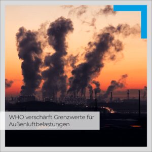 NEWS: In Ihren Leitlinien zur Außenluftqualität empfiehlt die WHO Ihre Grenzwerte aus 2005 teilweise drastisch zu reduzieren, da auch bei den reduzierten Werten noch Gesundheitsgefahren bestehen. Die Luftverschmutzung wird dabei als eine der größten Umweltgefahren für die menschliche Gesundheit neben dem Klimawandel angesehen.