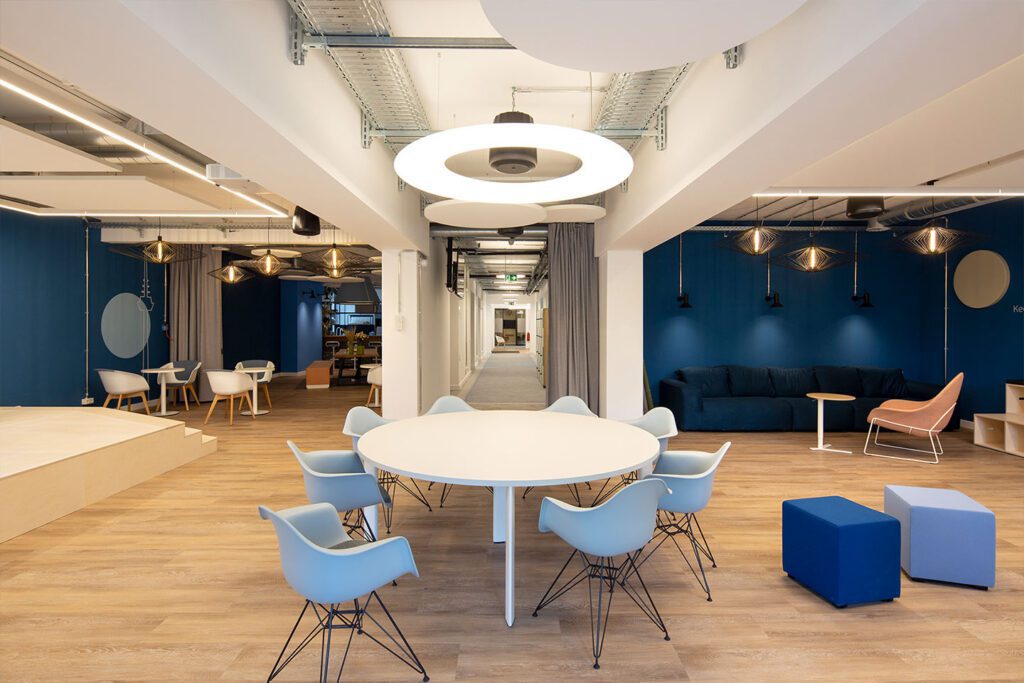 Der Großteil der Büroeinheiten ist bereits fertiggestellt und in diesen Bereichen nutzen die Mitarbeiter der verschiedenen Mieter die neuen vielfältigen Arbeitswelten.