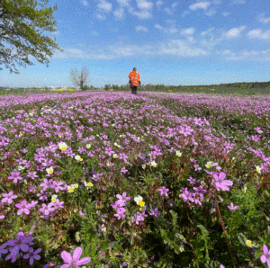 Manchmal leuchtet deshalb die MuP-Baustellen-Jacke aus einem Meer von Reiherschnabel und Acker-Stiefmütterchen.