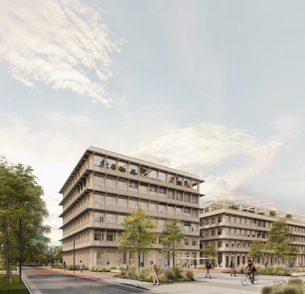 On the 13,626sqm plot, 4 commercial buildings with a total usable area of approx. 22,000sqm are planned. The development is divided into a north and a south half with two buildings each. The groundbreaking ceremony on 20.9.2023 marked the start of the first two buildings on the southern half.