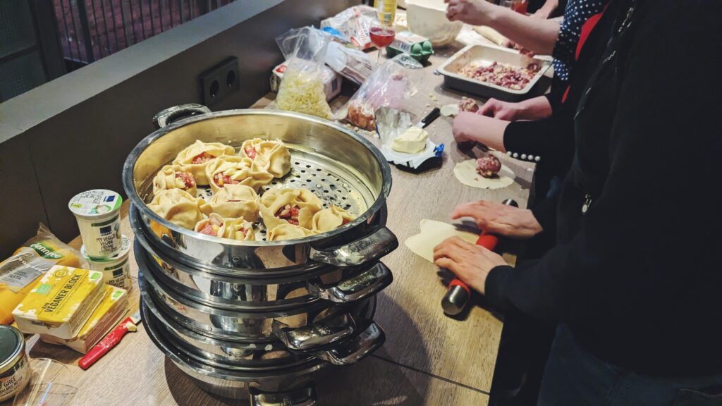 Every year in autumn, a date request is sent out for the Friday evenings during the Advent season. That's when we cook together in Hanover, as everyone has realised by now. Those who can organise it sign up and then discuss the dishes to be cooked. Everyone is always catered for, with lots of vegan options. Small groups are formed from the participants, who are each given a dish to cook.