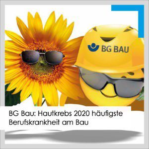 Aktuelle Zahlen zu Berufskrankheiten bei der BG Bau zeigen, dass durch natürliche UV-Strahlung verursachter weißer Hautkrebs mit mehr als 2.700 Fällen rund 18 % aller Meldungen ausmacht. Oft treten die Schäden erst nach 20 bis 30 Jahren auf, dabei reicht hierfür schon eine einstündige UV-Belastung an 50 Tagen mit intensivem Sonnenschein pro Jahr.