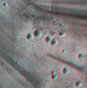 Die Bildbeispiele zeigen mehrere Sprengbombentrichter typischer Ausprägung. Mit Hilfe einer einfachen Rot-Cyan-Brille können die dargestellten Trichter im linken Bildausschnitt dreidimensional betrachtet werden.