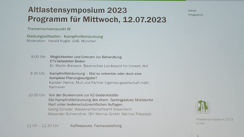 Zunächst möchte die Mull und Partner Ingenieurgesellschaft mbH ein großes Lob an den Veranstalter des Altlastensymposiums in Hof aussprechen. Die GAB hat am 11. und 12.7.2023 eine rundum gelungene Veranstaltung mit interessanten Themen zusammengestellt.